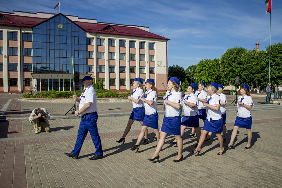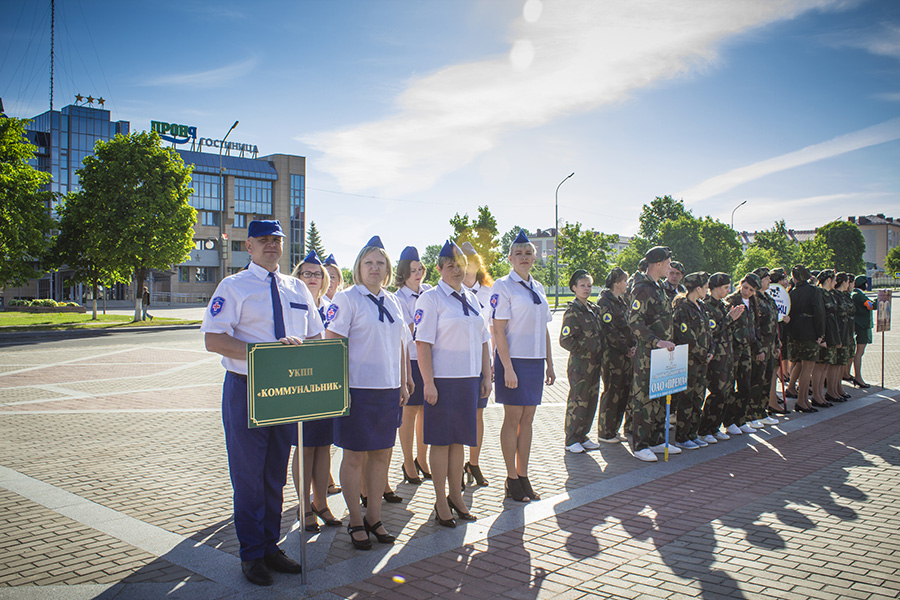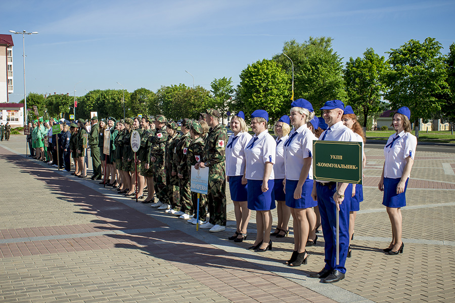 Начальник Горецкого РОЧС дал старт парадному маршу. 13 команд прошли по площади строем и с песней. Все дружины старались. Четко чеканя шаг, в унисон произнося слова военных и современных песен о Родине, команды упорно боролись за победу. На этом этапе каждая дружина была достойна похвалы. По итогам смотра-конкурса строя и песни среди гражданских формирований первое место у команды УКПП «Коммунальник».