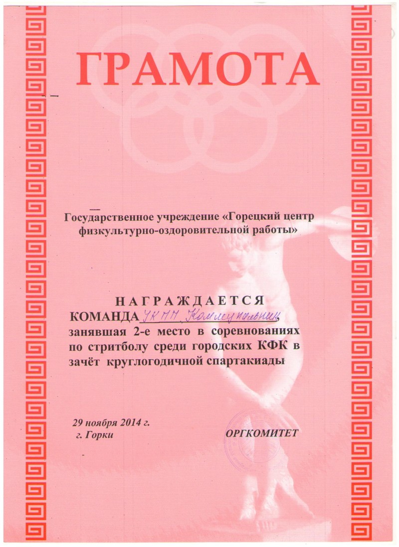 В субботу 29 ноября 2014 года в здании Ледовой арены состоялись соревнования по стритболу и гиревому спорту среди городских коллективов физической культуры в зачёт круглогодичной спартакиады. В соревнованиях приняла участие наша спортивная команда.