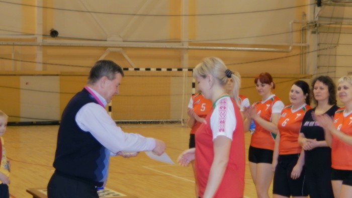 Вручает грамоту директор государственного учреждение «Горецкий центр физкультурно-оздоровительной работы» И.Н. Высоцкий капитану команды Кравченко Н.М.
