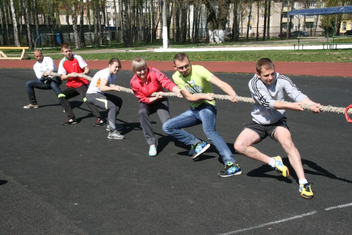Помериться силой по перетягиванию каната вышла вся наша команда.